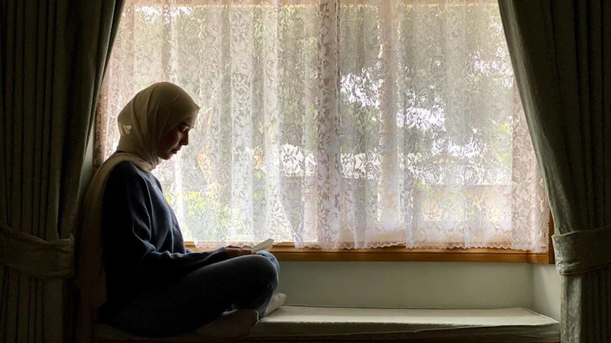 Mehray Mezensof sits alone at her home reading an old love letter written by her husband.( ABC News: Grace Tobin)