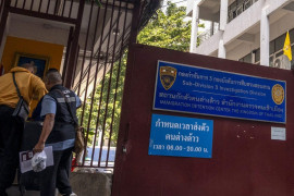 Police enter an immigration detention center in Bangkok on January 22. Thai authorities have deported at least 40 Uyghurs held in the country’s detention centers, after U.N. experts warned the group could face torture if they return....