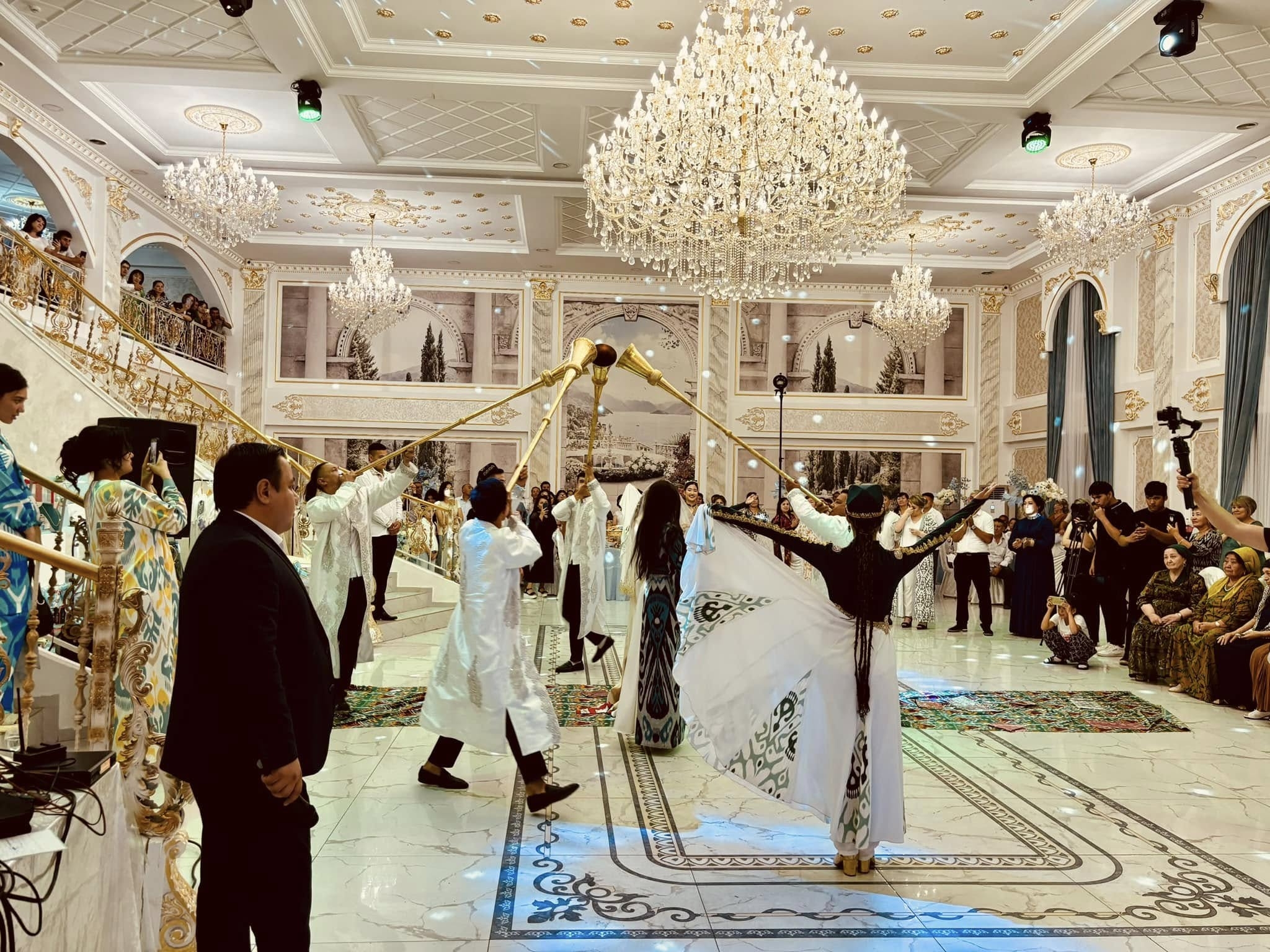 Unlike the singer, the host, or the dance troupe, members of the traditional band arrive hours before the ceremony to begin performing well ahead of the guests and the newlyweds. As attendees slowly trickle into the banquet hall, the musicians stand by the entrance, filling the air with festive instrumental music – a practice that echoes traditional village weddings and other communal gatherings rooted in the meshrep tradition.