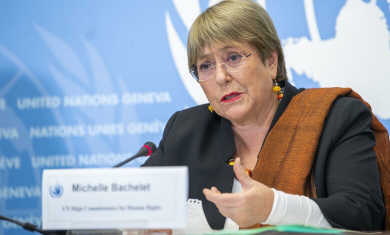 بىرلەشكەن دۆلەتلەر تەشكىلاتىنىڭ كىشىلىك ھوقۇق ئالىي كومىسسارى مىشېل باچېلېت 8-مارت سەيشەنبە كۈنى ب د ت كىشىلىك ھوقۇق كېڭىشىنىڭ يىغىنىغا سىنلىق شەكىلدە سۆز قىلغاندا، «مەن يېقىندا خىتاي ھۆكۈمىتى بىلەن 5-ئايدا پىلانلانغان زىيارەتتە كېلىشىم ھاسىل قىلغانلىقىمىزنى خۇشاللىق بىلەن جاكارلايمەن» دېگەن.