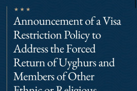 уйғур вә қоғдашқа иһтийаҗлиқ башқа милләт йаки диний гуруһ әзалириниң мәҗбурий һалда хитайға қайтурулушиға қарита виза...